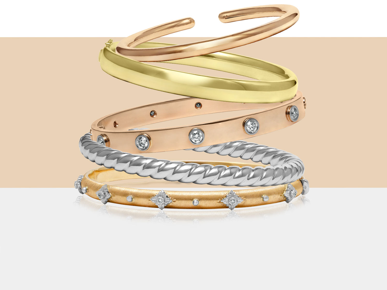 Lyppens jewellers offer a vast collection of bangle bracelets. These are timeless elegant bracelets that look like a solid piece of gold around your wrist due to the often-hidden clasp that locks the bracelet in place.