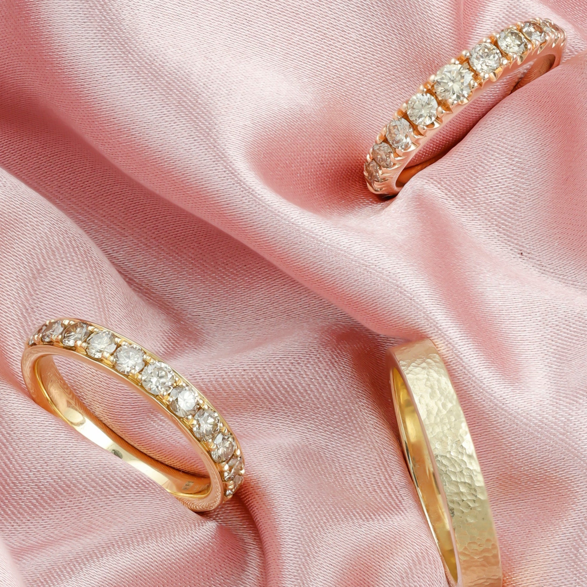 Lyppens offers six basic models, which you can customise to any width, size, colour and material to suit your preferences. All rings at Lyppens jewellers are crafted in 14 or 18 carat gold. You can choose from yellow gold, white gold and rose gold. All wedding rings are made from a solid tube to ensure durability, which is thenthe workshopwill be finished according to your specific requirements.